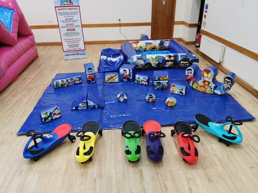 Our Superhero Party Package is every Superhero's dream! This ultimate package includes our low height Superhero Castle, 6 didi cars, Superhero soft play and ball pond!! It is sure to provide hours of fun and you can have it all for just £185 (plus delivery)