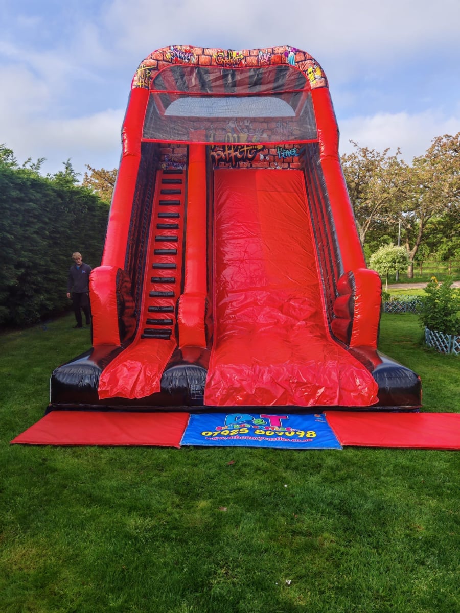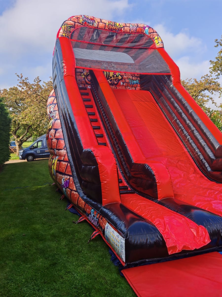 Another of our stand out inflatables, this slide definitely has the wow factor! With a 12ft platform height this slide is sure to get the adrenaline pumping! It has soft padded steps making the climb to the top easy and safe, then all you have to do is enjoy the slide down!
